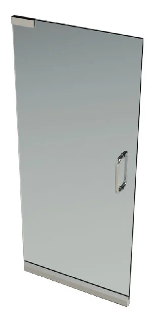 Narrow, vertical stile all glass door equipped with continuous top & bottom rails.